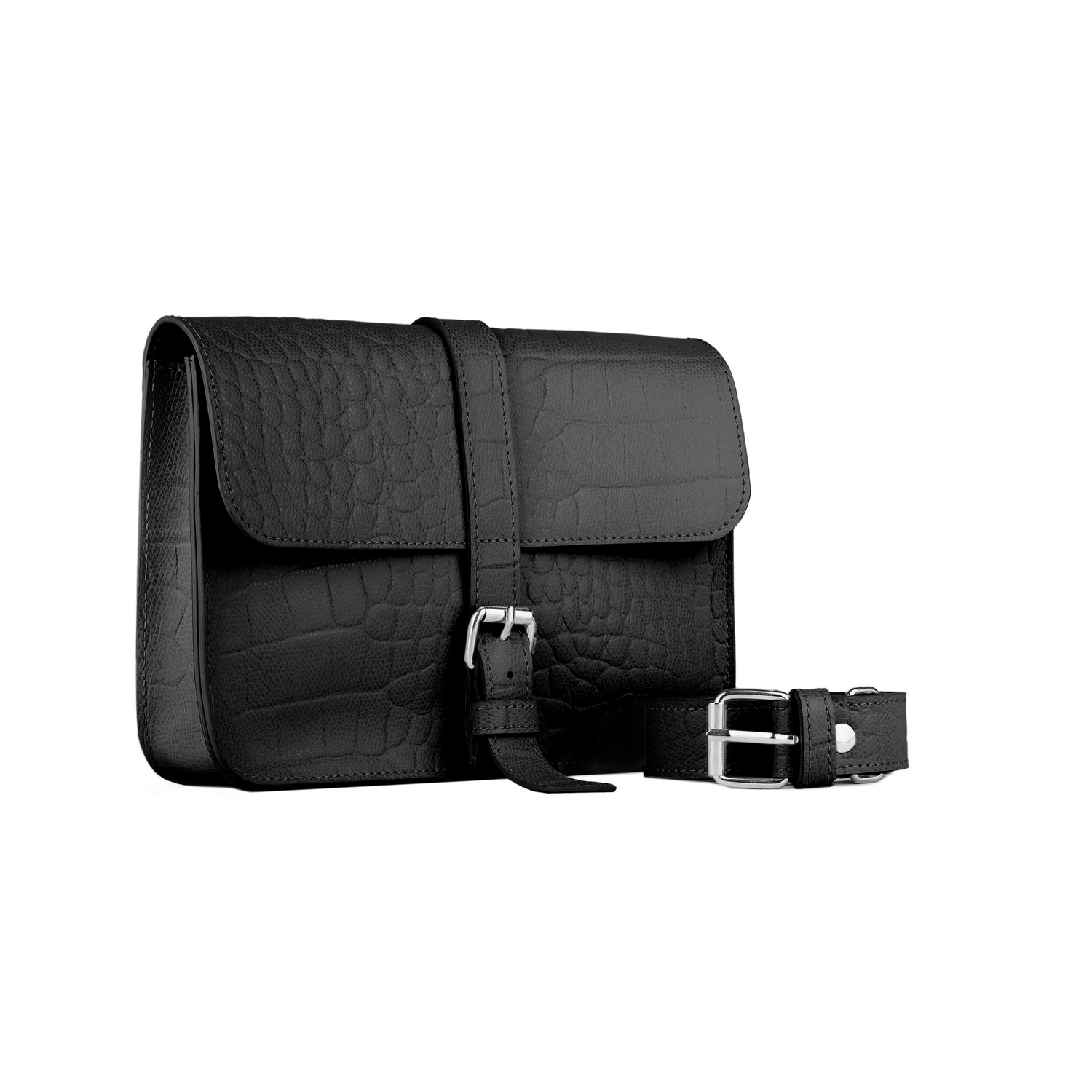 Borsetă din piele naturală croco neagră Core