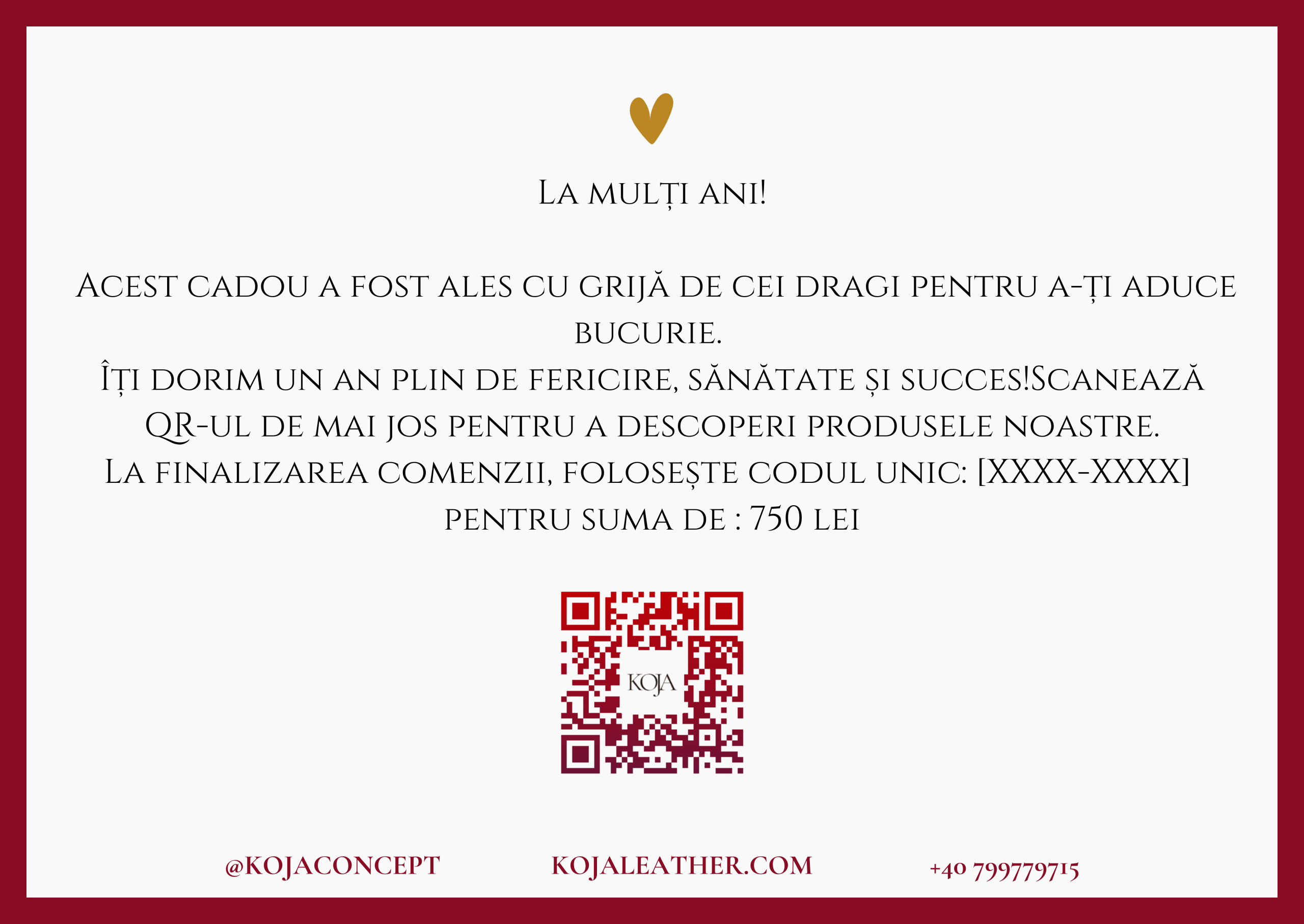 Card cadou digital, emis pentru achiziționarea produselor KOJA.