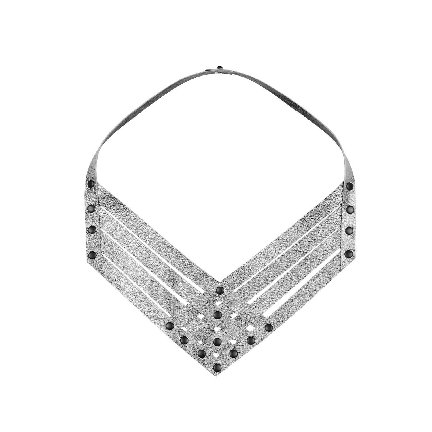 Etichete: accesorii piele metalizata, colier dama, colier piele
