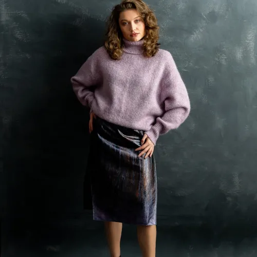 Notă: Fiecare fustă este unică – textura și finisajul obținute prin vopsire manuală nu pot fi replicate identic.