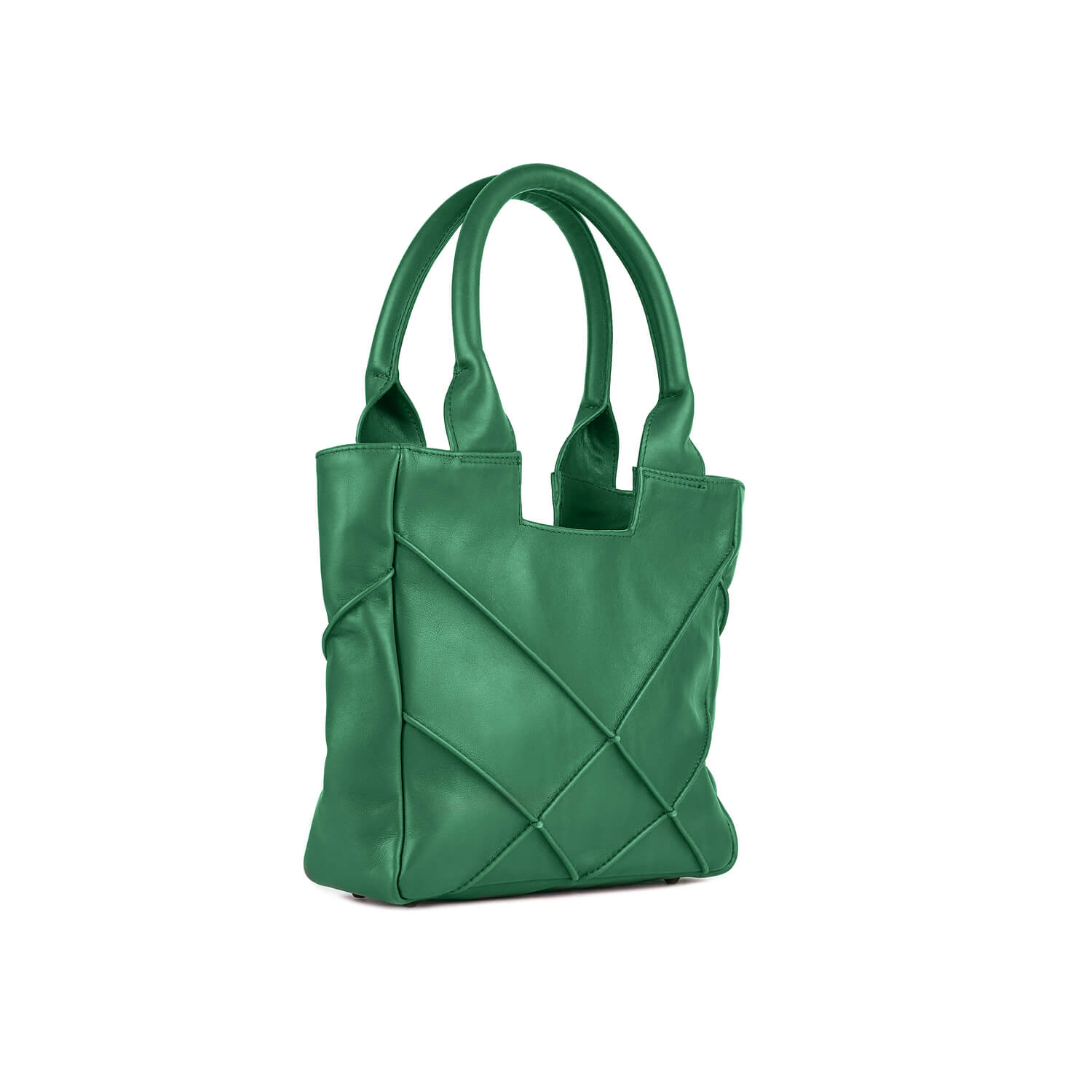 Modelul Origami Mini este realizat din piele naturală și dispune de mânere ce permit purtarea pe umăr sau în mână.