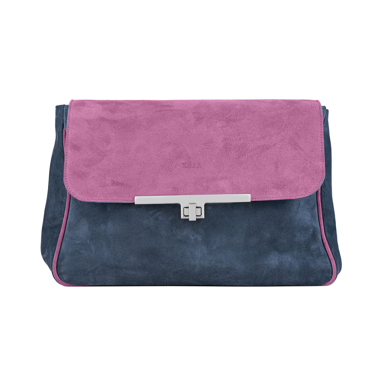 Geantă din piele întoarsă albastru-roz Venus Maxi