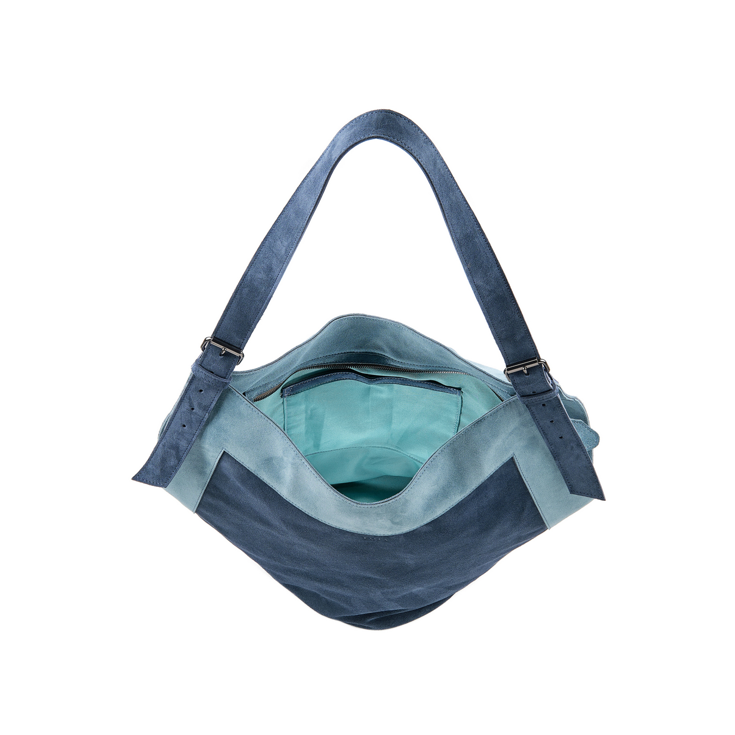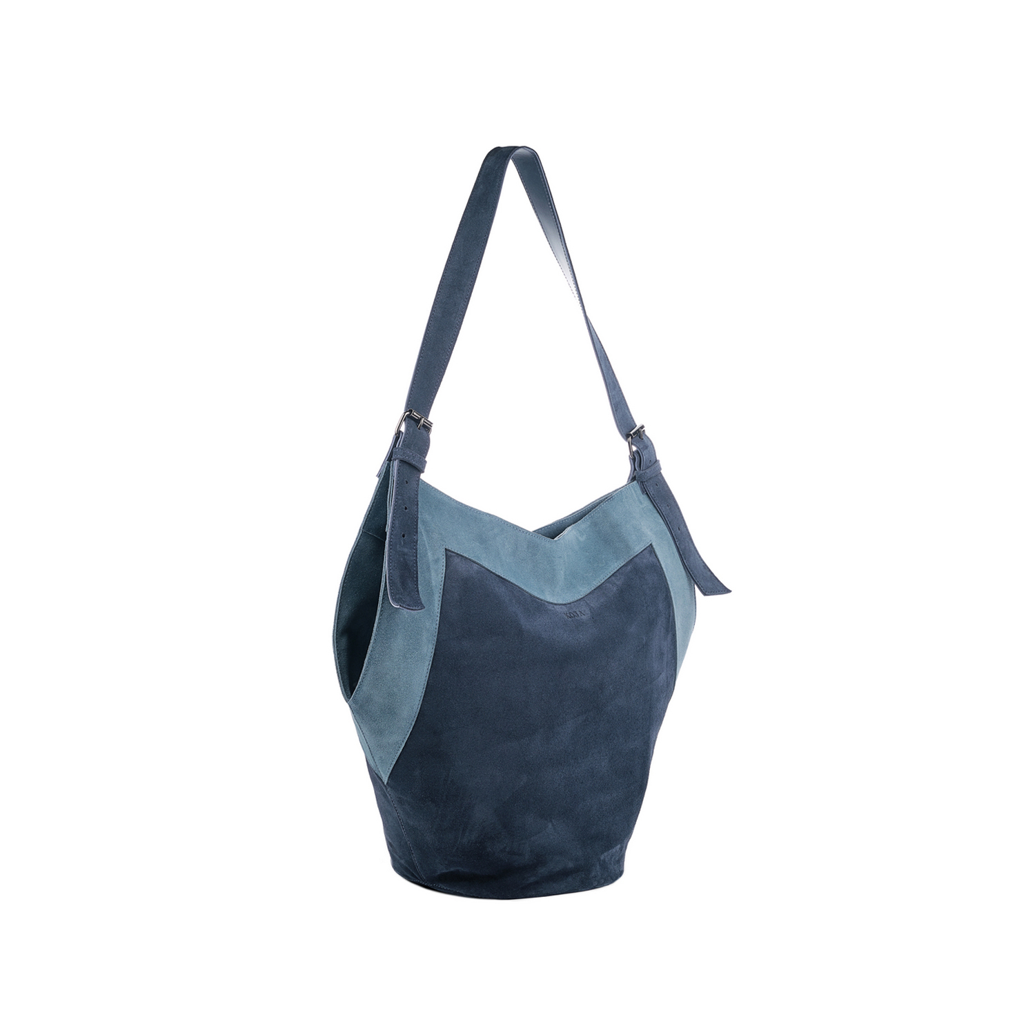 Geanta Thesa are o structură moale și formă trapezoidală, cu o bretea lată care permite purtarea pe umăr sau în mână.