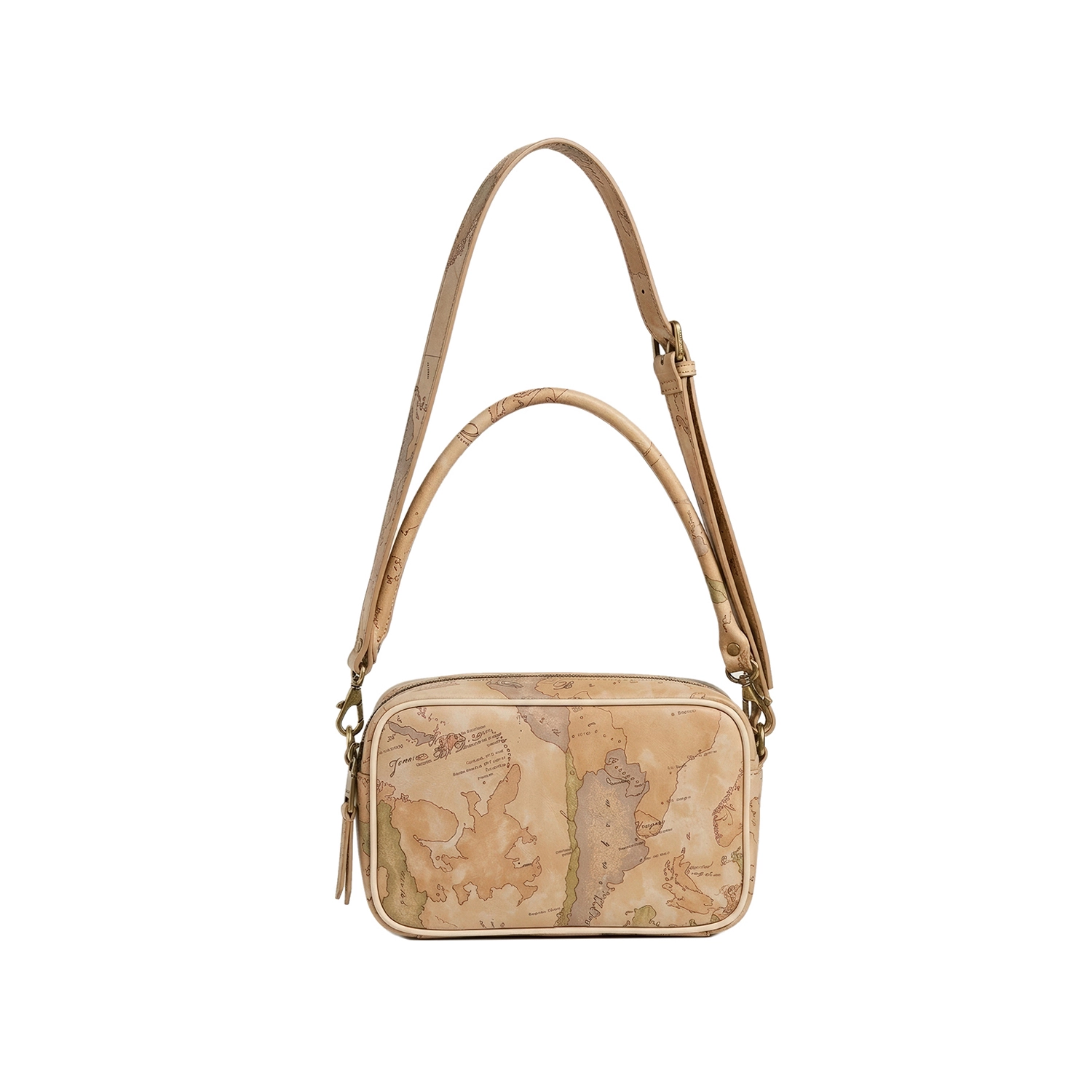 Geanta se închide cu fermoar și este prevăzută cu o curea lungă reglabilă și un mâner scurt detașabil, potrivită pentru purtare pe umăr sau în mână.