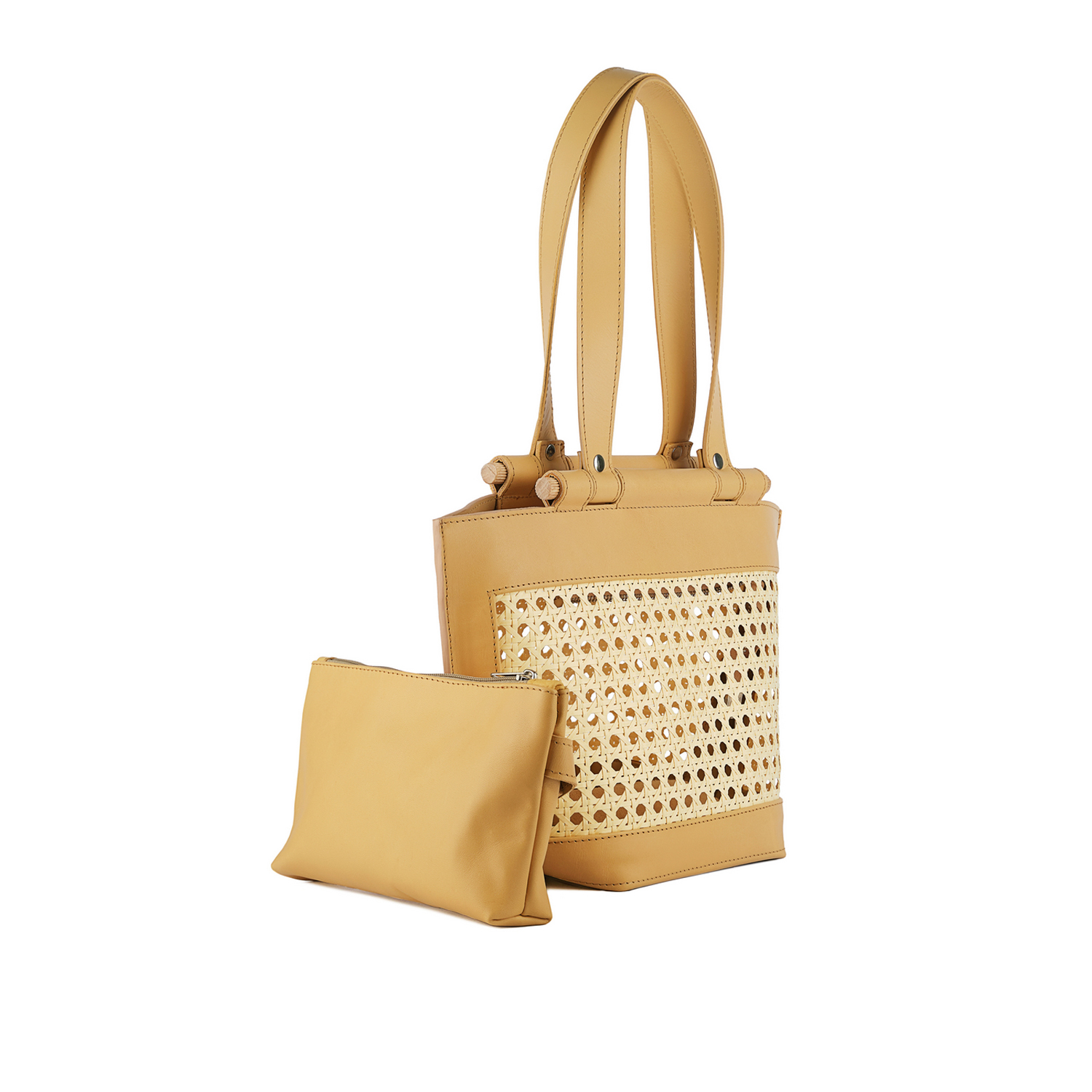 Modelul Province este realizat cu structură dublă față și inserții din ratan crem, împletit manual.