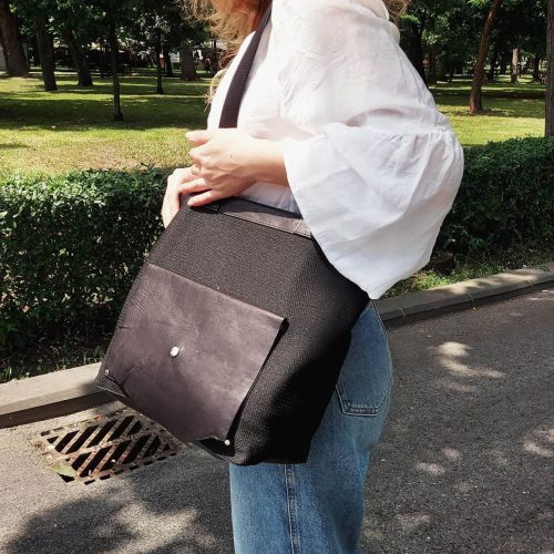Geantă de umăr din piele naturală și pânză, The Shopper.