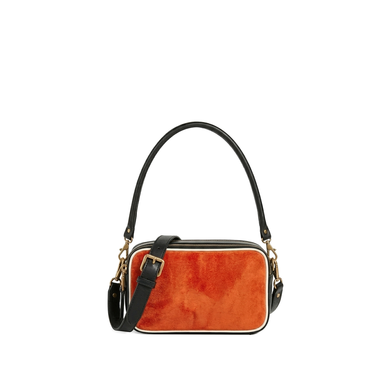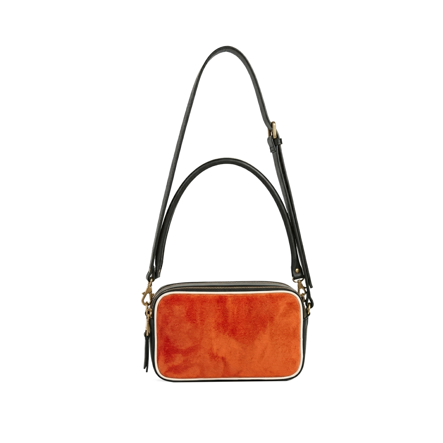 Geanta se închide cu fermoar și este prevăzută cu o curea lungă reglabilă și un mâner scurt detașabil, potrivită pentru purtare pe umăr sau în mână.