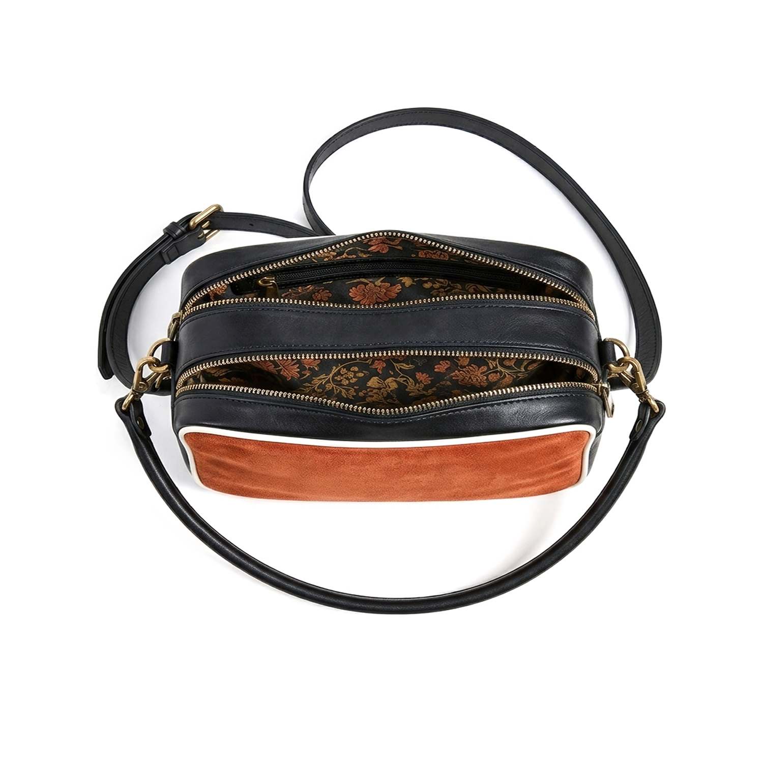 Modelul Nina Baguette include două compartimente principale, căptușite cu material textil, fiecare prevăzut cu câte un buzunar interior pentru organizarea obiectelor de dimensiuni mici.