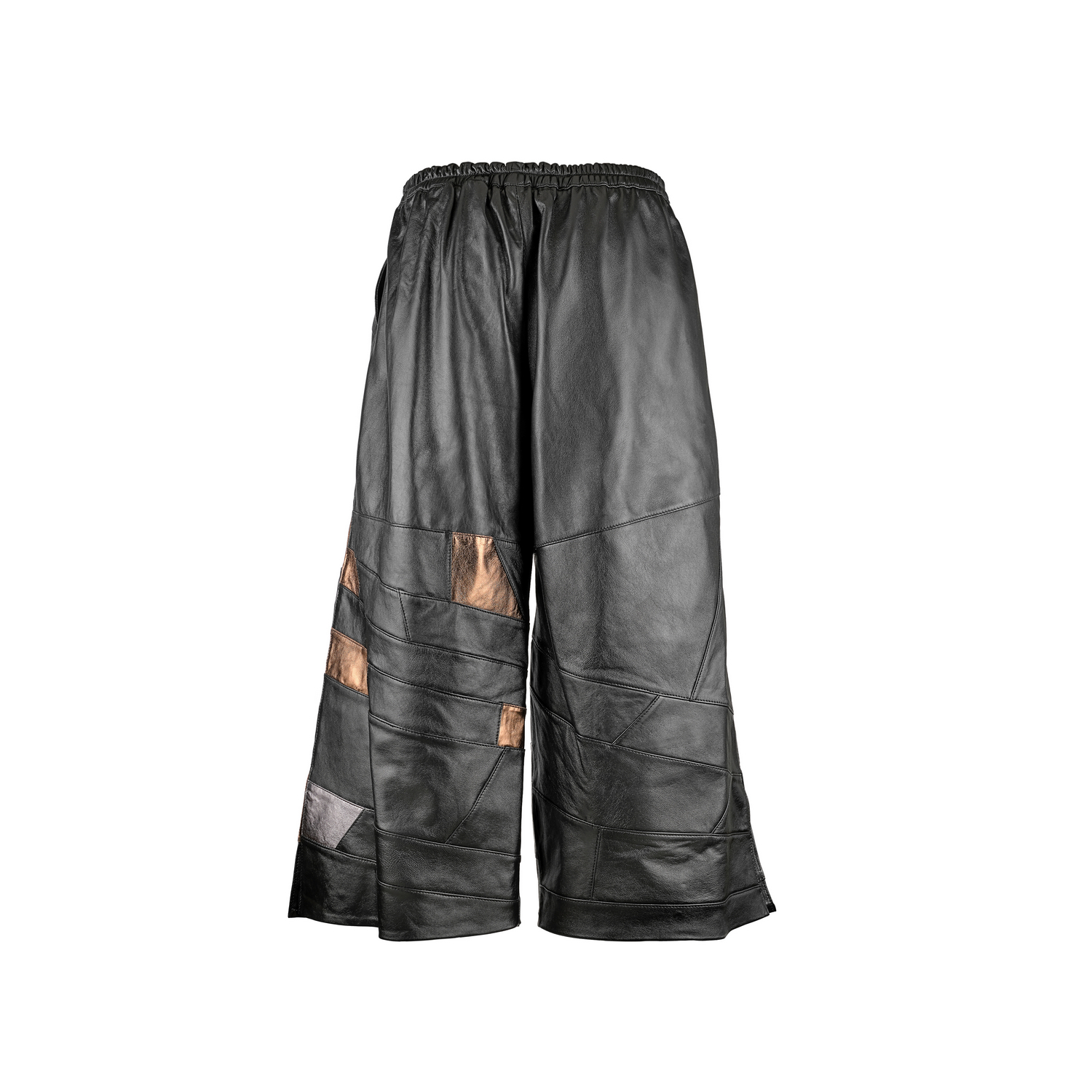 Pantaloni culotte din piele naturală neagră cu inserții cupru Flow